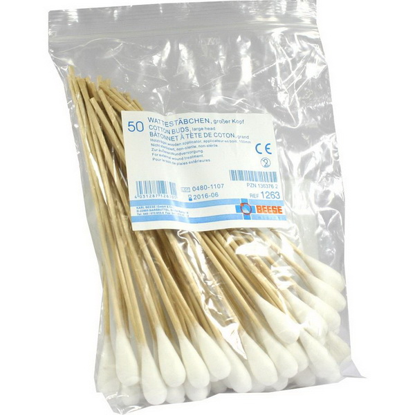 Wattestäbchen Steril Holz 15cm großer Kopf 50x2 ST