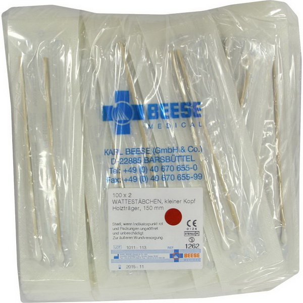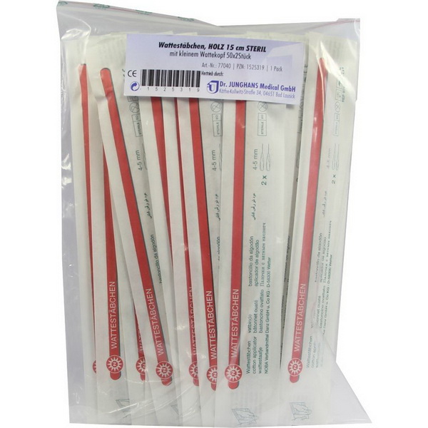 Wattestäbchen Steril Holz 15cm kleiner Kopf 50x2 ST