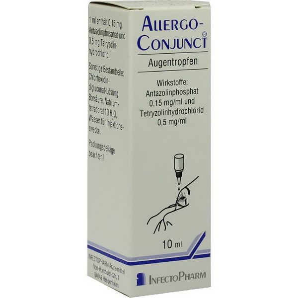 ALLERGOCONJUNCT wirkt gegen Überempfindlichkeit gegenüber bestimmten Stoffen (Allergien) und verengend auf die Blutgefäße am Auge.