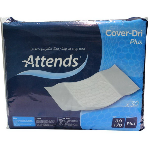 Attends Cover-Dri Plus 80 x 170 cm Krankenunterlagen sind weiche, hautfreundliche Einmal-Schutzauflagen für Betten. Mit Seitenflügel zur Verwendung als Stecklaken.