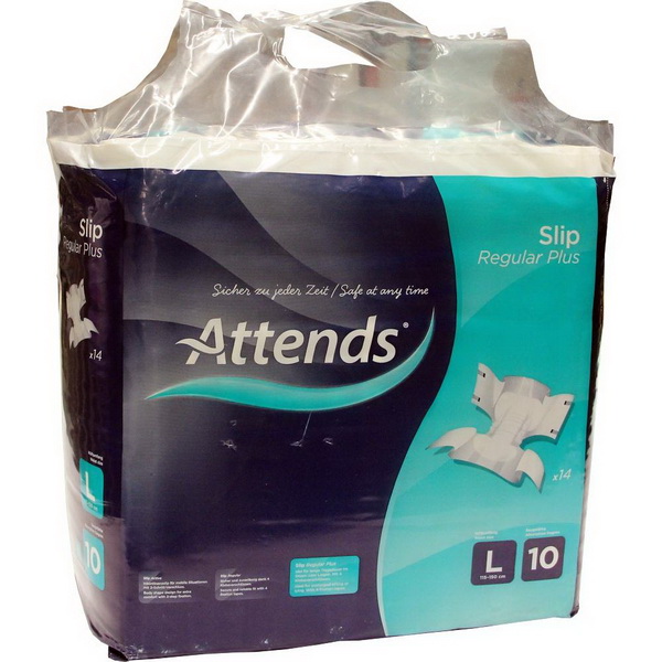 Attends Slip Regular Plus 10 Large (Saugstärke 10) ist eine sehr leistungsstarke Rundumversogung bei schwerer Harn- und Stuhlinkontinenz. Für sehr große Urin- und Stuhlverluste bei sehr langen Tragezeiten.