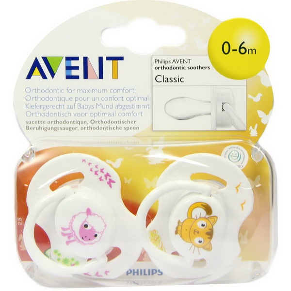Die kiefergerecht geformten, weichen und symmetrischen Philips AVENT Sauger sorgen für eine natürliche Entwicklung von Gaumen, Zähnen und Zahnfleisch. Alle Philips AVENT Beruhigungssauger bestehen aus Silikon und sind geruchs- und geschmacksneutral. Änderungen der Farben vorbehalten.