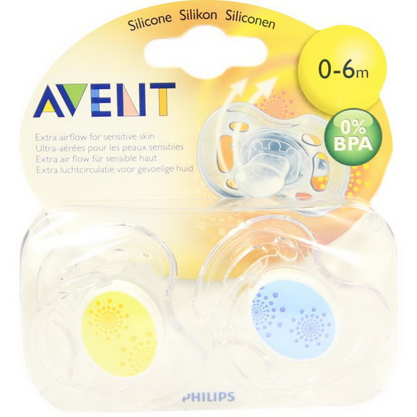 Die kiefergerecht geformten, weichen und symmetrischen Philips AVENT Sauger sorgen für eine natürliche Entwicklung von Gaumen, Zähnen und Zahnfleisch. Alle Philips AVENT Beruhigungssauger bestehen aus Silikon und sind geruchs- und geschmacksneutral. Änderungen der Farben vorbehalten.