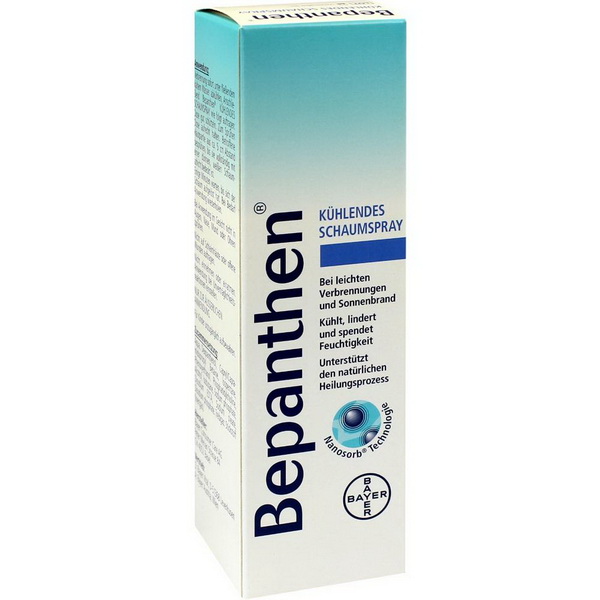 Bepanthen® Kühlendes Schaumspray lindert leichte Verbrennungen und Sonnenbrand. Es erzeugt einen leichten Schaumfilm auf der geröteten Haut und wirkt angenehm kühlend. Zudem wird die Haut nachhaltig mit Feuchtigkeit versorgt und so der natürliche Heilungsprozess der Haut gefördert.