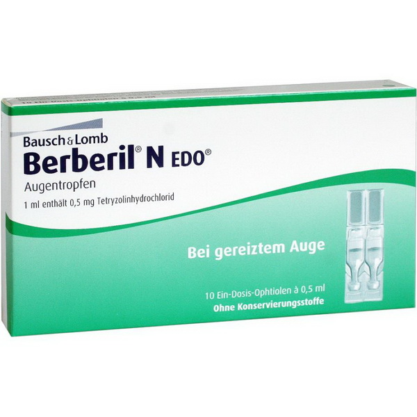 Berberil® N Augentropfen mit dem bewährten Wirkstoff Tetryzolin gehören zur Wirkstoffgruppe der Alpha-Sympathomimetika, d. h. sie lindern akut gereizte Augen minutenschnell, indem sie die erweiterten Gefäße der Augenbindehaut beruhigen und wieder abschwellen lassen.