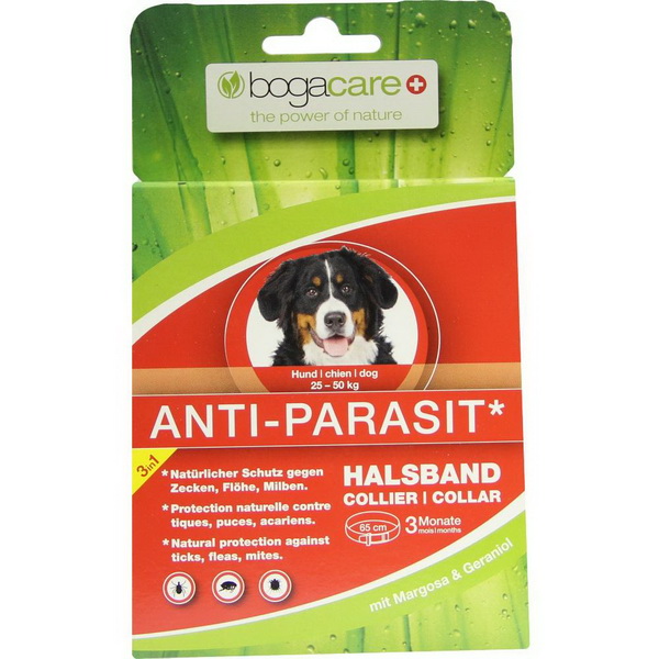 Das bogacare®ANTI-PARASIT Halsband bietet durch die Kombination von reinem Margosa und Geraniol einen natürlichen, abwehrenden Schutz gegen Zecken, Flöhe und Milben. Diese stark repellierenden, pflanzlichen Wirkstoffe werden laufend freigesetzt und entfalten so ihre optimale Wirkung. Bis zu 3 Monate wirksam.