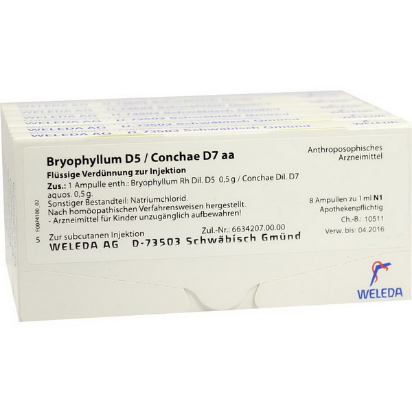 1 Ampulle enthält: Wirkstoffe: Bryophyllum Rh Dil. D5 0,5 g / Conchae Dil. D7 aquos. 0,5 g.
