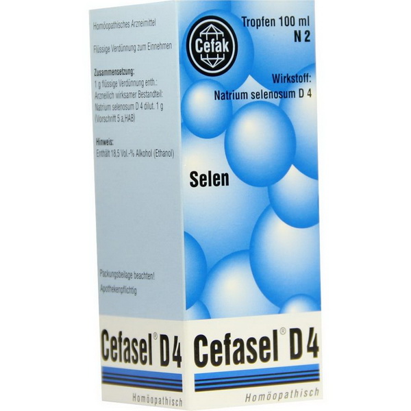 Cefasel® D4 ist ein homöopathisches Arzneimittel. Registriertes homöopathisches Arzneimittel, daher ohne Angabe einer therapeutischen Indikation. Bei während der Anwendung des Arzneimittels fortdauernden Krankheitssymptomen ist medizinischer Rat einzuholen.