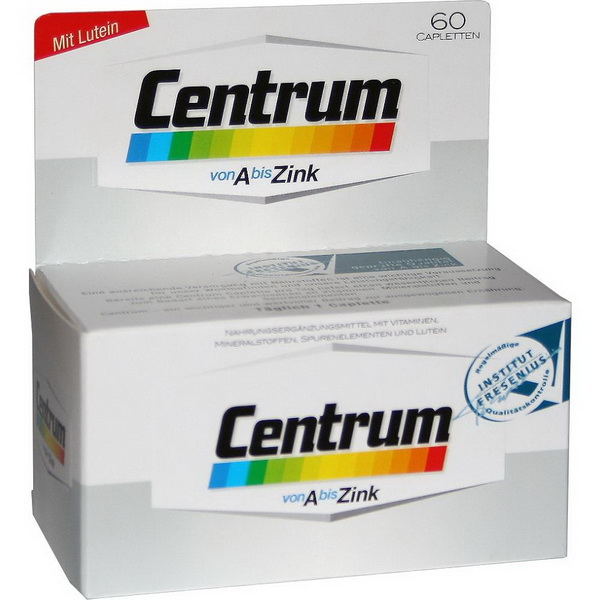 Centrum von A bis Zink enthält alle lebenswichtigen Vitamine und Mineralstoffe in ausgewogenem Verhältnis. Es ergänzt die Nahrung so, dass eine gute Vitamin- und Mineralstoffversorgung zuverlässig erreicht werden kann.