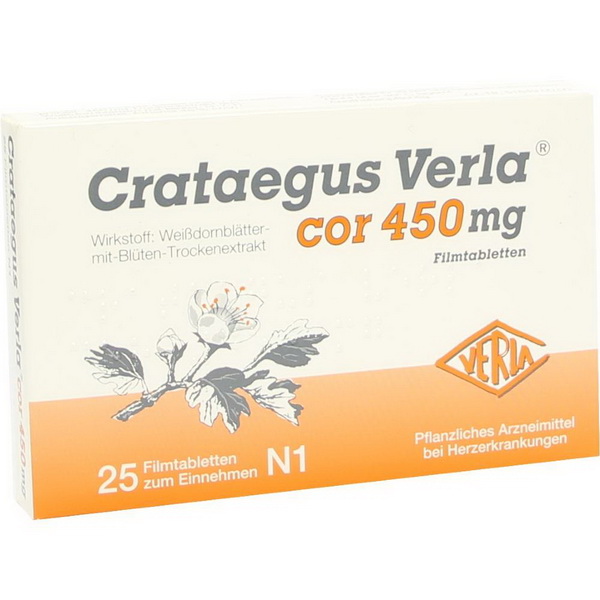 Crataegus Verla® cor 450 mg ist ein hochdosiertes Weißdornpräparat, das zur Behandlung eines in der Leistungsfähigkeit eingeschränkten Herzens sowie bei Druck- und Beklemmungsgefühlen in der Herzgegend angewendet wird. Als Mittel zur unterstützenden Kräftigung des Altersherzens verbessert der Weißdornextrakt die Pumpleistung des Herzmuskels, indem er das pro Herzschlag vom Herzen in den Kreislauf gepresste Blutvolumen erhöht. Damit steigert er die Durchblutung und die Sauerstoffversorgung der Herzkranzgefäße und des Herzmuskels. Weißdorn wird auch eingesetzt bei leichten Herzrhythmusstörungen. Crataegus Verla® cor 450 mg kann das Herz stärken und damit das Allgemeinbefinden, die körperliche Ausdauer und die Leistungsfähigkeit steigern.