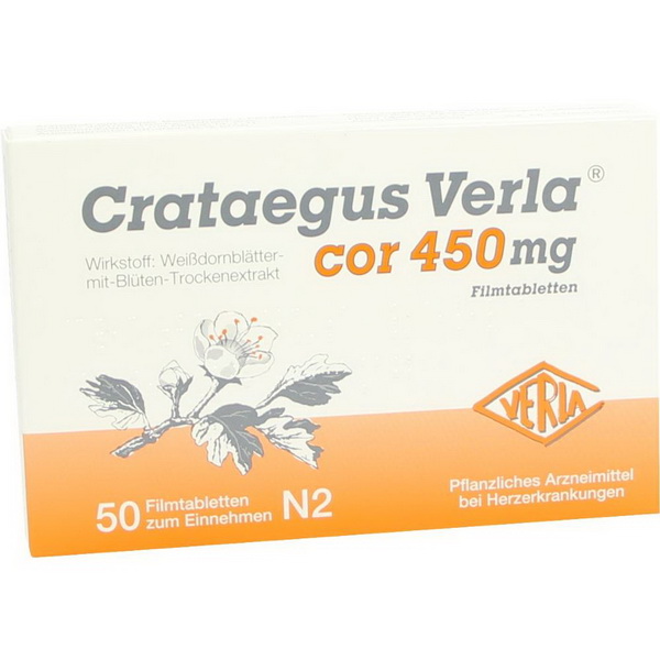 Crataegus Verla® cor 450 mg ist ein hochdosiertes Weißdornpräparat, das zur Behandlung eines in der Leistungsfähigkeit eingeschränkten Herzens sowie bei Druck- und Beklemmungsgefühlen in der Herzgegend angewendet wird. Als Mittel zur unterstützenden Kräftigung des Altersherzens verbessert der Weißdornextrakt die Pumpleistung des Herzmuskels, indem er das pro Herzschlag vom Herzen in den Kreislauf gepresste Blutvolumen erhöht. Damit steigert er die Durchblutung und die Sauerstoffversorgung der Herzkranzgefäße und des Herzmuskels. Weißdorn wird auch eingesetzt bei leichten Herzrhythmusstörungen. Crataegus Verla® cor 450 mg kann das Herz stärken und damit das Allgemeinbefinden, die körperliche Ausdauer und die Leistungsfähigkeit steigern.