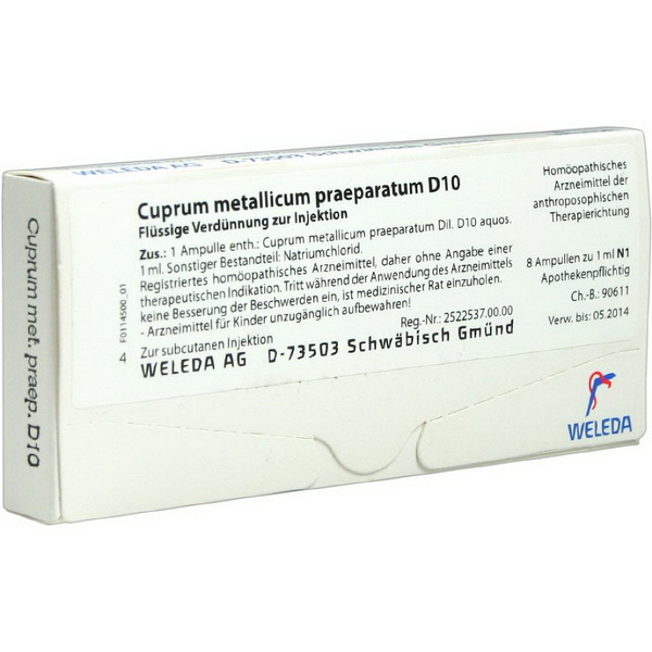 1 Ampulle enthält: Wirkstoff: Cuprum metallicum praeparatum Dil. D10 aquos. 1 ml.