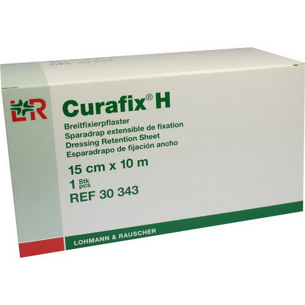 Allgemeine Informationen zu Curafix H Fixierpflaster 15cm x 10mDehnbares Fixierpflaster zur vollflächigen Applikation von Wundauflagen, speziell in der postoperativen Versorgung; auch zur Fixierung von Drainagen, Kathetern u.a.. Besonders geeignet für verbandtechnisch schwierige Körperstellen, z. B. an Gelenken, am Hals etc.