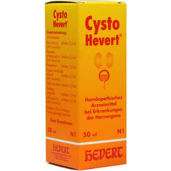Bei der in Cysto Hevert Tropfen vorliegenden Wirkstoffkombination istdie rasche Schmerzlinderung und Entzündungshemmung die vorherrschendeWirkung. Harndesinfizierende, blasentonisierende und die Nierenfunktionanregende Bestandteile wie Bucco (Buccoblätter), Populus tremuloides(Zitterpappel), Petroselinum (Petersilie), Equisetum arvense(Ackerschachtelhalm) sowie Solidago virgaurea (Goldrute) und Urtica(Brennessel) bessern die mit dem Krankheitsbild einhergehendenBeschwerden beim Wasserlassen. Die Wirkstoffe von Sabal serrulatum(Sägepalme) wirken insbesondere Blasenentleerungsstörungen beigutartiger Prostatavergrößerung entgegen.