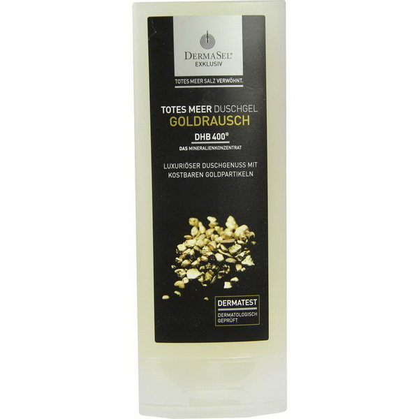 Wertvolle Nanopartikel aus echtem Gold, natürliches Totes Meer-Mineralsalzkonzentrat und ein moderner Haut-Conditioner verwandeln das tägliche Duschen in ein luxuriöses Pflegeerlebnis. Dermasel® Gold Dusch-Gel verleiht ein straffes Hautgefühl und schenkt mit seinem edlen Duft aus französischen Parfums, eingehüllt in feinporigem Schaum, exquisiten Duschgenuss.