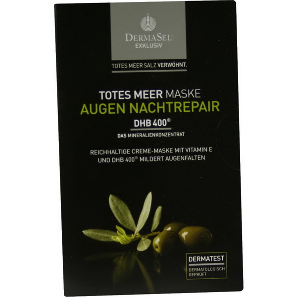 Als Spezialpräparat für die Intensiv-Pflege der Augenpartie entwickelt, mildert die Dermasel Exklusiv Maske Nachtrepair nachhaltig feine Linien und Falten der empfindlichen, zu Trockenheit neigenden Haut um die Augen. Die innovative Formel mit einem Wirkkomplex aus Dermaxyl, Hyaluronsäure, Pentavitin, Vitamin E und den magnesiumreichen Mineralsalzen aus dem Toten Meer bindet Wasser in der Bindegewebsmatrix und verleiht der Haut um die Augen ein festes, straffes Aussehen.