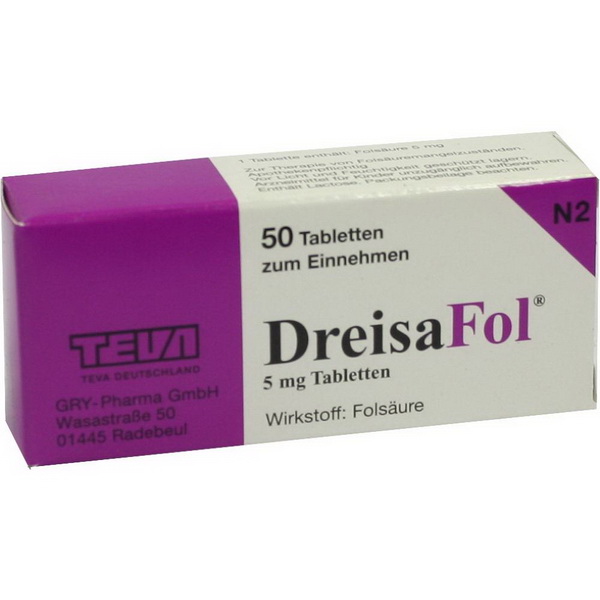 1 Tabletten DreisaFol enthält 5 mg Folsäure.