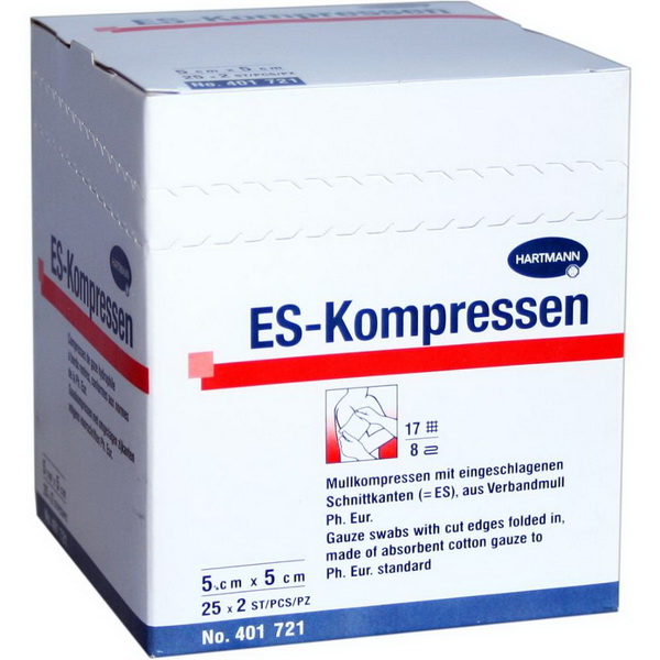 Aus Verbandmull EN 14079, 17-fädig, mit eingeschlagenen Schnittkanten (= ES); auch mehrfach aufgeklappt in größeren Formaten verwendbar, ohne dass störende Randfäden auftreten; gute Saugfähigkeit, luftdurchlässig, weich und geschmeidig; erhältlich in verschiedenen Lagen, steril und unsteril.