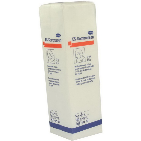 Aus Verbandmull EN 14079, 17-fädig, mit eingeschlagenen Schnittkanten (= ES); auch mehrfach aufgeklappt in größeren Formaten verwendbar, ohne dass störende Randfäden auftreten; gute Saugfähigkeit, luftdurchlässig, weich und geschmeidig; erhältlich in verschiedenen Lagen, steril und unsteril.
