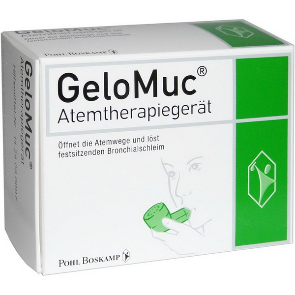GeloMuc® ist ein Atemtherapiegerät zur Mobilisation von festsitzendem, zähem Bronchialschleim aus den Atemwegen, wie z. B. bei Patienten mit chronischer Bronchitis, chronisch-obstruktiver Bronchitis (COPD) oder Asthma. Durch die Anwendung von GeloMuc® entsteht in den Bronchien ein Überdruck, der die Atemwege öffnet und unproduktiven Husten vermindert.