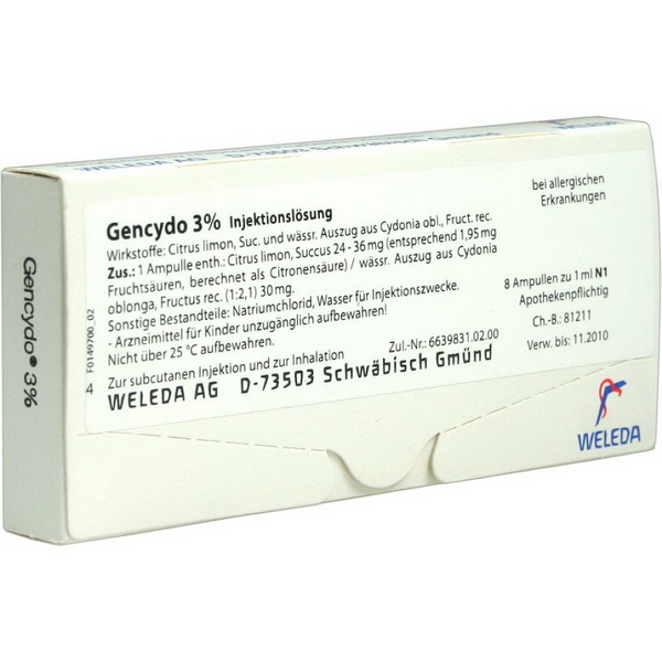 Durch die Natur des Ausgangsmaterials bedingt, können Gencydo Injektionslösungen eine