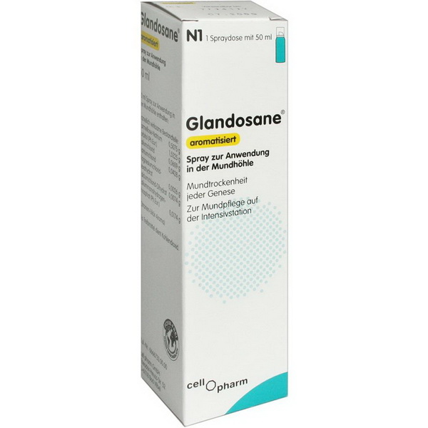 Glandosane® ist eine Spraylösung, die den mangelnden Speichel bei Mundtrockenheit ersetzt. Hierbei wird der natürliche Feuchtigkeitszustand im Mundraum regeneriert. Die Lösung wird unter anderem bei Mundtrockenheit eingesetzt, die durch eine strahlenbedingte Schädigung der Speicheldrüsen verursacht wurde.