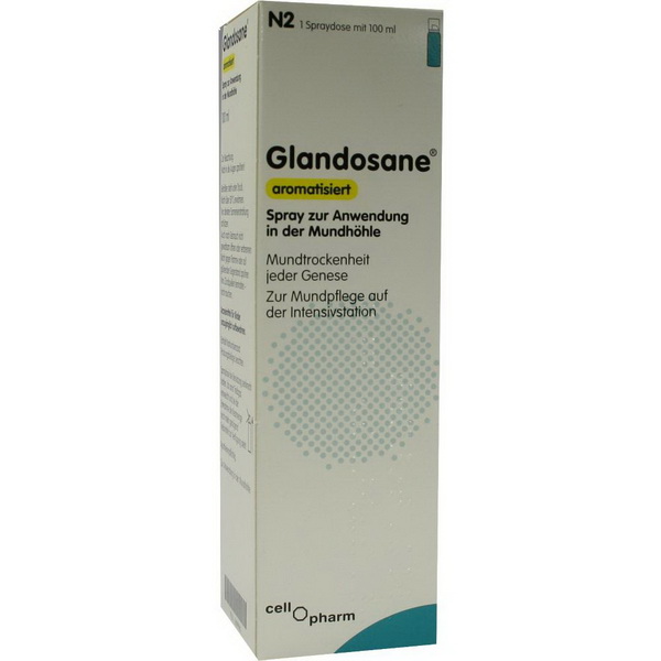 Glandosane® ist eine Spraylösung, die den mangelnden Speichel bei Mundtrockenheit ersetzt. Hierbei wird der natürliche Feuchtigkeitszustand im Mundraum regeneriert. Die Lösung wird unter anderem bei Mundtrockenheit eingesetzt, die durch eine strahlenbedingte Schädigung der Speicheldrüsen verursacht wurde.