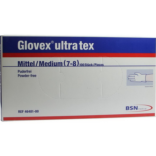 Glovex® ultra tex Untersuchungshandschuhe bestehen aus 100 % Latex. Enthält Naturkautschuklatex, wodurch Allergien ausgelöst werden können.