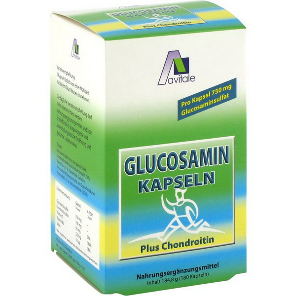Nahrungsergänzungsmittel mit 750 mg Glucosamin, 100 mg Chondroitin, 50mg Vitamin C (trägt zur normalen Kollagenbildung für die Gelenkknorpel- und Knochenfunktion bei), 2mg Vitamin B6 und 10 μg pro Kapsel.