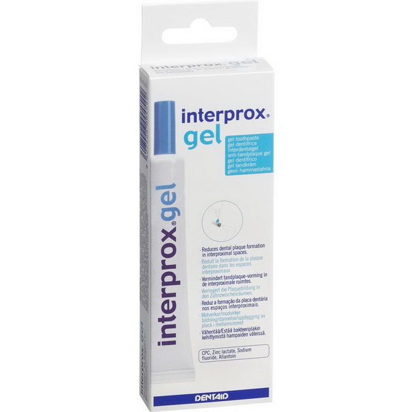 Ein Tropfen interprox® Gel auf ein Interdentalbürstchen – am besten auf ein interprox Bürstchen – geben und die