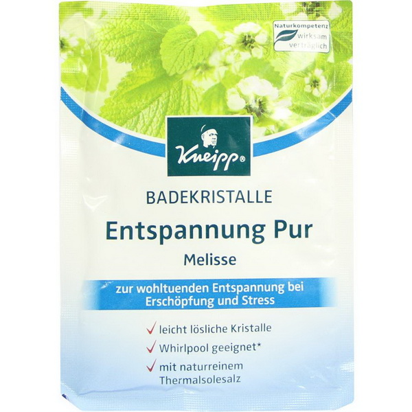 Die Kneipp® Badekristalle Entspannung Pur mit natürlich reinem Thermalsolesalz sowie wertvollem ätherischem Öl der Indischen Melisse und dem Extrakt der Zitronenmelisse schenken Ihnen ein beruhigendes und entspannendes Badeerlebnis.