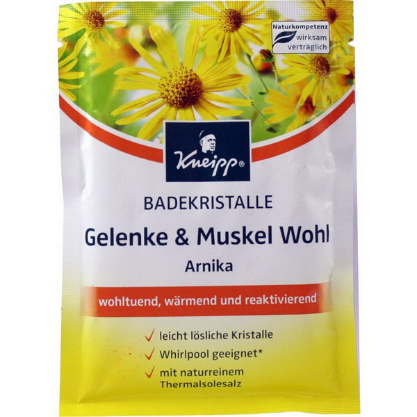 Die Kneipp® Badekristalle Gelenke & Muskel Wohl aus natürlich reinem Thermalsolesalz mit wertvollem Extrakt der Arnika und natürlichen ätherischen Ölen aus Cabreuva, Rosmarin und Pinus-Arten schenken Ihnen ein wohltuendes, wärmendes und reaktivierendes Badeerlebnis.