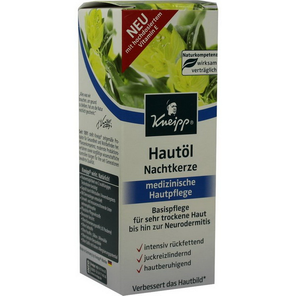 Das Kneipp® Hautöl Nachtkerze enthält eine besondere Kombination aus hochwertigen Ölen, die sich durch den hohen Gehalt an essenziellen Fettsäuren auszeichnen: Hautberuhigendes Nachtkerzenöl, sehr gut verträgliches Mandelöl und wertvolles Sonnenblumenöl sorgen für intensive Rückfettung und optimale Hautverträglichkeit. Abgerundet wird die natürliche Pflegewirkung durch hochdosiertes Vitamin E zum Zellschutz und zur Hautregeneration.