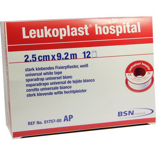 Leukoplast® hospital ist ein weißes Fixierpflaster mit wasserabweisender Oberfläche für die normal empfindliche Haut. Es ist außergewöhnlich zugfest und weist eine hohe Sofort- und Dauerklebkraft auf.