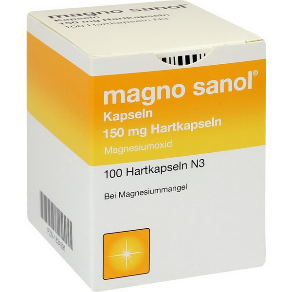 magno sanol® Kapseln / magno sanol® uno 245 mg Kapseln. Wirkstoff: Schweres Magnesiumoxid. Anwendungsgebiete: Nachgewiesener Magnesiummangel, wenn er Ursache für Störungen der Muskeltätigkeit (neuromuskuläre Störungen, Wadenkrämpfe) ist. Warnhinweis: Arzneimittel für Kinder unzugänglich aufbewahren. Zu Risiken und Nebenwirkungen lesen Sie die Packungsbeilage und fragen Sie Ihren Arzt oder Apotheker! Stand: April 2011. UCB Pharma GmbH / SANOL GmbH, Alfred-Nobel-Straße 10, 40789 Monheim