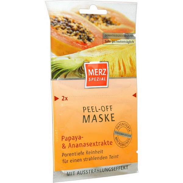 Die Peel-off Maske von Merz Spezial reinigt die Haut porentief und schenkt ihr einen strahlenden Teint. Das klare, erfrischende Gel befreit sanft von abgestorbenen Hautpartikeln, Talgablagerungen und Hautunreinheiten und lässt die Haut wieder frei atmen. Extrakte aus Ananas und Papaya beleben und vitalisieren die Haut. Gleichzeitig regeneriert beruhigendes Panthenol die Haut. Sie erscheint feiner und glatter und fühlt sich spürbar geschmeidiger an.