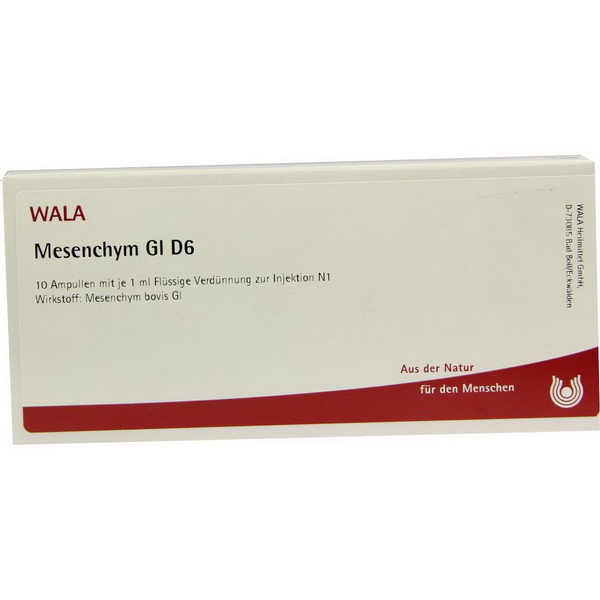 Flüssige Verdünnung zur Injektion: 1 ml enthält: Mesenchym bovis Gl Dil. D. 1 ml (HAB, Vs. 41b).
