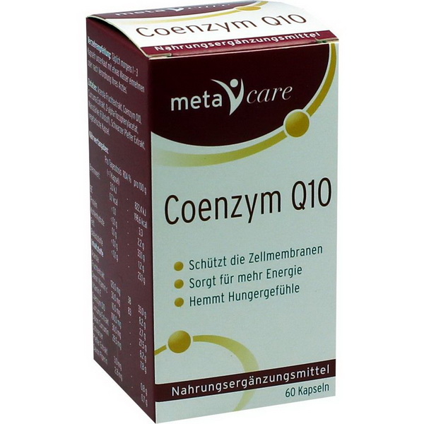 Täglich morgens 1 Kapsel metacare® Coenzym Q10 nach dem Essen unzerkaut mit etwas Wasser einnehmen