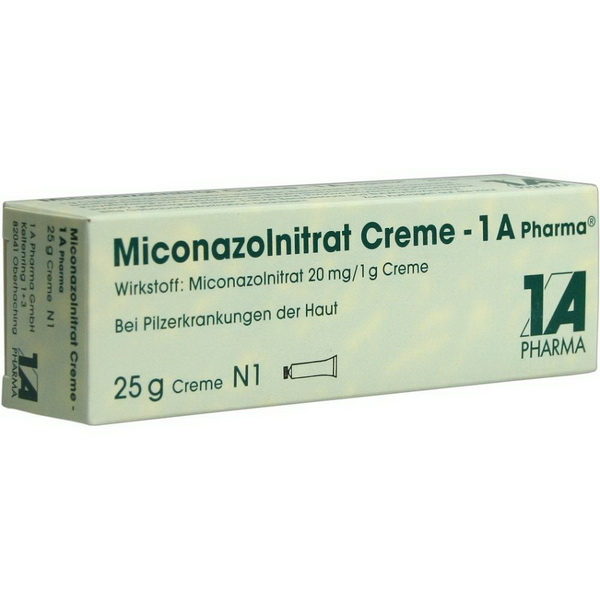 1 g Creme enthält 20 mg Miconazolnitrat. Anwendungshinweis: Soweit nicht anders verordnet, tragen Sie etwas Creme 2-mal täglich auf die erkrankten Hautstellen auf. Massieren Sie die Creme leicht ein. Sie sollten Miconazolnitrat Creme - 1 A Pharma® 3 Wochen lang anwenden. Auch nach Abklingen der Beschwerden sollte die Behandlung über diesen Zeitraum durchgeführt werden. Bei nicht ausreichend langer Behandlung kann sich die Pilzerkrankung erneut ausbreiten.