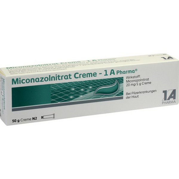 1 g Creme enthält 20 mg Miconazolnitrat. Anwendungshinweis: Soweit nicht anders verordnet, tragen Sie etwas Creme 2-mal täglich auf die erkrankten Hautstellen auf. Massieren Sie die Creme leicht ein. Sie sollten Miconazolnitrat Creme - 1 A Pharma® 3 Wochen lang anwenden. Auch nach Abklingen der Beschwerden sollte die Behandlung über diesen Zeitraum durchgeführt werden. Bei nicht ausreichend langer Behandlung kann sich die Pilzerkrankung erneut ausbreiten.