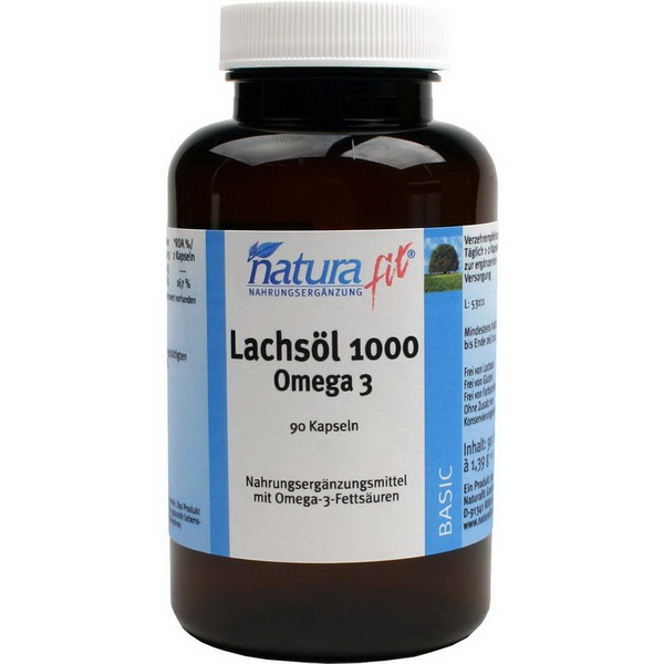 Lachsöl ist besonders reich an ungesättigten Fettsäuren, den Omega-3-Fettsäuren. Diese Fettsäuren sind für den Menschen essentiell, der Körper kann sie nicht selbst herstellen, sondern muss seinen Bedarf mit der Nahrungsaufnahme decken. Auch Diabetiker sowie schwangere und stillende Frauen sollten im Rahmen einer gesundheitsbewussten Ernährung auf die Zufuhr von hochdosierten Omega-3-Fettsäuren nicht verzichten. Lachsöl 1000 enthält 1000 mg Öl pro Kapsel. In Lachsöl sind die Hauptinhaltsstoffe die Docosahexaensäure (DHA) und die Eicosapentaensäure (EPA). Beide sind an vielen Reaktionen im Körper beteiligt. DHA trägt zur Erhaltung normaler Sehkraft bei. Beide zusammen tragen zu einer normalen Herzfunktion bei. Der Ersatz gesättigter Fettsäuren durch einfach- und oder mehrfach-ungesättigte Fettsäuren (u.a. DHA, EPA) in der Ernährung trägt zur Aufrechterhaltung eines normalen Cholesterinspiegels im Blut bei.