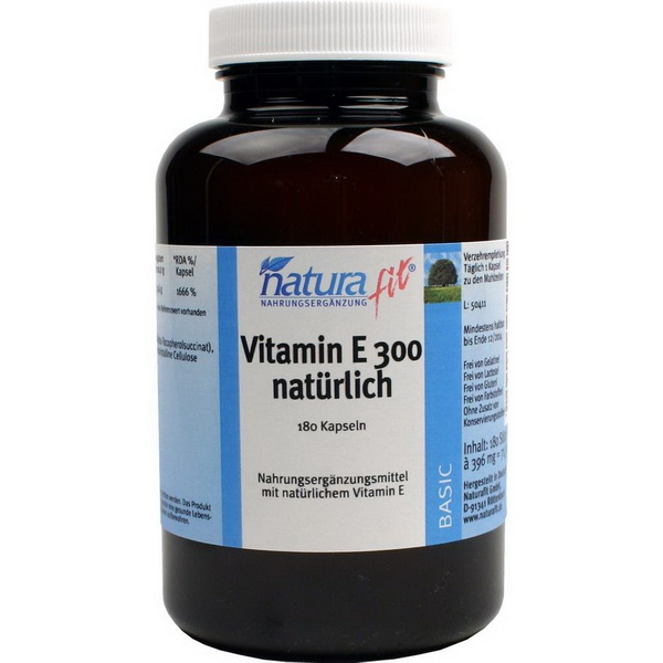 Vitamin E ist ein essentieller Nährstoff. Es kann aber nur von Pflanzen synthetisiert werden. Tiere und Menschen müssen es mit ihrer Nahrung aufnehmen. In der Natur kommen acht Vitamin E-Stoffgemische vor, u.a. das so genannte alpha-Tocopherol. naturafit® Vitamin E 300 natürlich - zur Versorgung mit Vitamin E. Vitamin E trägt dazu bei, die Zellen vor oxidativem Stress zu schützen.