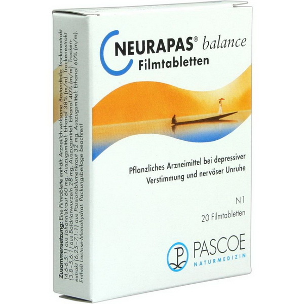 Mögliche Nebenwirkungen: Bei der Anwendung von NEURAPAS® balance kann es vor allem bei hellhäutigen Personen durch erhöhte Empfindlichkeit der Haut gegenüber Sonnenlicht (Photosensibilisierung) zu sonnenbrandähnlichen Reaktionen der Hautpartien kommen, die starker Bestrahlung (Sonne, Solarium) ausgesetzt sind. Außerdem können unter der Medikation mit NEURAPAS® balance vermehrt allergische Hautausschläge, Magen-Darm-Beschwerden, Müdigkeit, Unruhe sowie subjektive Missempfindungen wie z.B. Kribbeln auftreten.
