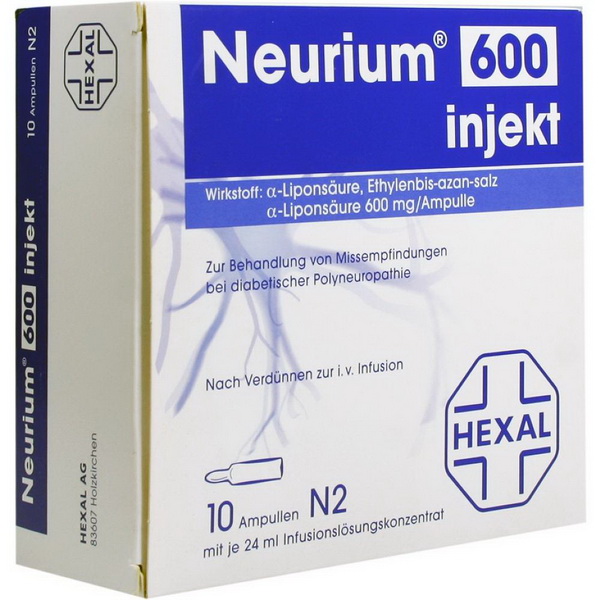 - Bei starken Missempfindungen wird bei Erwachsenen 1mal täglich die Infusion von 300-600mg Wirkstoff a63-Liponsäure in 250ml isotonischer Natriumchlorid-Lösung empfohlen.