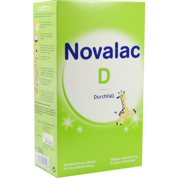 Novalac D ist eine Spezialnahrung für Säuglinge von Geburt an bis zum 3. Lebensjahr, während oder nach einer Durchfallerkrankung. Novalac D wurde speziell entwickelt, um Ihrem Baby alle notwendigen Nähr- und Mineralstoe rasch und gut verträglich zur Verfügung zu stellen, damit sich der Flüssigkeitshaushalt schnell normalisieren kann. Novalac D ist lactosefrei und enthält Milchprotein (Casein). Tritt bei Ihrem Baby eine Durchfallerkrankung auf, sollte die Gabe Ihrer herkömmlichen Säuglingsnahrung beendet und mit der Gabe von Novalac D begonnen werden. Novalac D soll wegen seiner besonderen Zusammensetzung nur zeitlich begrenzt gegeben werden. Nach der Gabe von Novalac D sollte wieder mit Zufuhr der herkömmlichen Säuglingsnahrung begonnen werden
