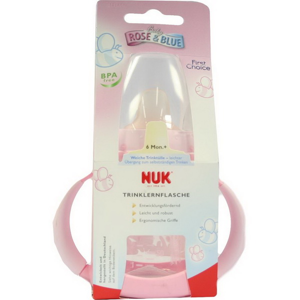 Die NUK Baby Rose Trinklernflasche ist mit kindgerechten Motiven bedruckt. Sie ist mit allen anderen Artikeln der NUK First Choice Reihe frei kombinierbar und eignet sich für Kinder ab 6 Monaten.