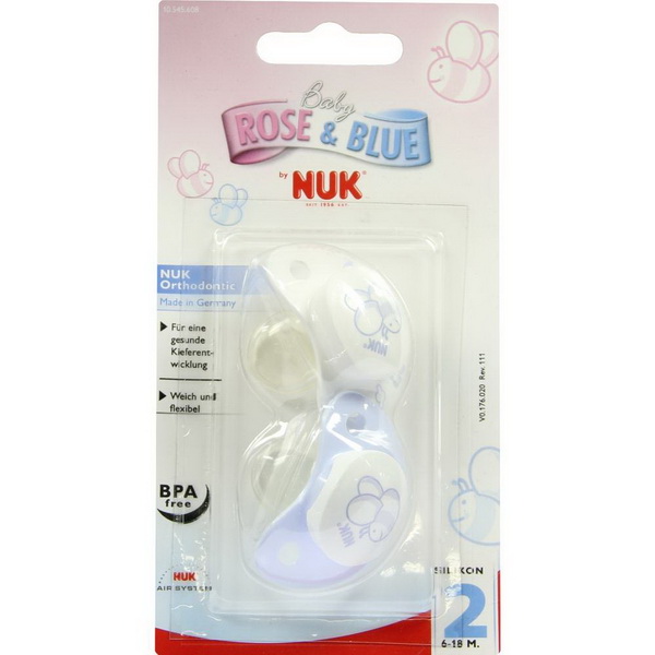 Die NUK Baby Blue Schnuller haben die kiefergerechte NUK Form. Die anatomisch geformte Mundplatte passt sich perfekt dem Gesicht Ihres Kindes an.