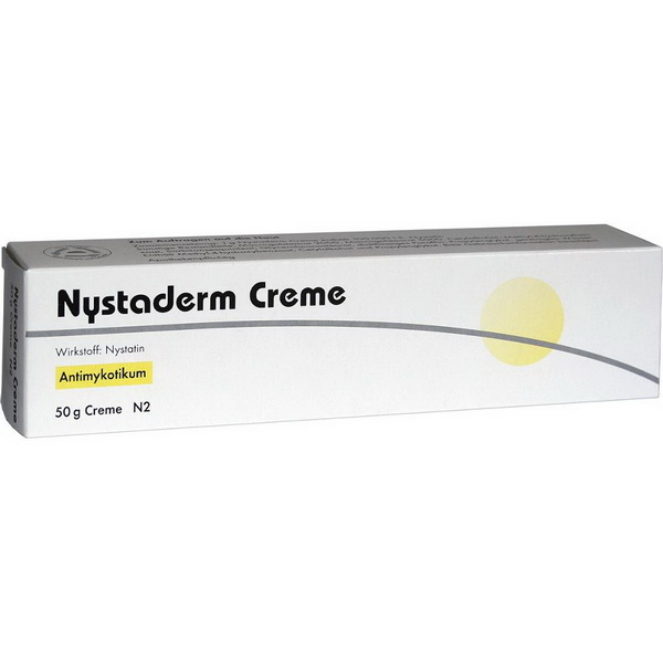 Nystaderm Creme wird angewendet bei nachgewiesenen Nystatin-empfindlichen Hefepilzinfektionen der Haut, wenn weder eine fettende noch austrocknende Komponente erwünscht ist, insbesondere mit Beteiligung von Candida spp., wie z. B. Windelkandidose. Nystaderm Creme wirkt spezifisch gegen saprophytische und parasitische Hefepilze, besonders gegen Candida-Arten. Der Wirkstoff Nystatin hemmt bei niedriger und mittlerer Dosierung die Ausbreitung der Krankheitserreger. Durch hohe Nystatin-Dosen werden diese abgetötet. Die Wirkung von Nystatin ist von der Keimdichte abhängig, daher sollte bei unbekannter Keimdichte stets maximal dosiert werden. Dadurch gelingt, von Dosis und Keimdichte ab hängig, eine entsprechende Reduzierung und Eliminierung der Hefepilze.