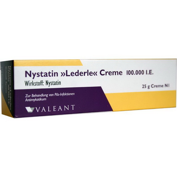 Nystatin Lederle wird zur Behandlung von Hautinfektionen, welche durch Pilze hervorgerufen wurden, eingesetzt. Die Creme enthält den Wirkstoff Nystatin. Der Wirkstoff bindet sich an die Zellwand der Pilze und erhöht dadurch deren Durchlässigkeit. Im Zellinneren kommt es zu einer Störung des Stoffwechsels, dadurch stellen die Pilze ihr Wachstum ein oder sterben sogar ab. Die Nystatin Lederle Creme lindert die Begleiterscheinungen der Infektion, wie Juckreiz und Rötungen.