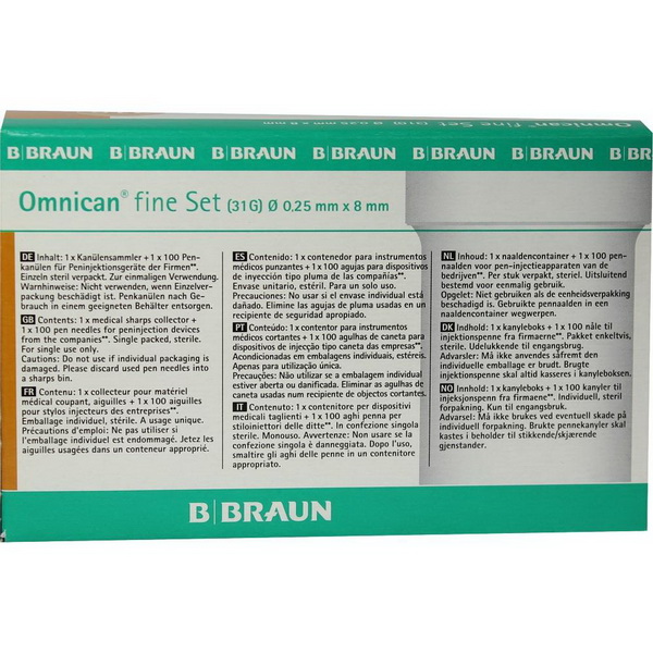 Omnican® fine Penkanülen mit innerer Nadelkappe für Pen-Injektions-Systeme inklusive Entsorgungsbox im Set